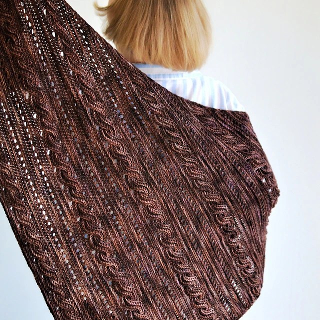 Chocomania is a stunning shawl made using Malabrigo Arroyo. The entire shawl is single crochet (including some extended single crochet), and creates its stunning cables through a tedious-but-worth-it process of tangling and untangling your yarn. We have a sample of this beauty in the shop for you to drool over next time you stop in. While you’re at it, check out Elena’s other patterns as well. She has an amazing catalog of really unique stuff.
