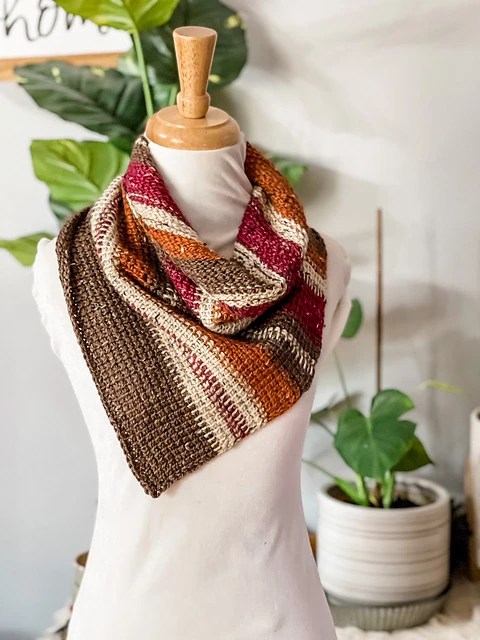 I love fun shawls, and I love scrap busters, so this project is perfect! It’s also an easier, straightforward introduction if you’re feeling like venturing into the world of Tunisian crochet. This uses DK scraps, but could easily be adjusted to use up whatever scraps you’ve got. The trick to remember is to use a hook size about three sizes up from what’s typically recommended for your yarn. Don’t wanna use scraps? Grab a few skeins of Universal Deluxe DK Tweed instead.