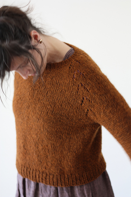Felix is a lovely, basic sweater pattern that’s available as a cardigan or a pullover. You can use aran or chunky weight yarn to make either pattern, and if you want some extra floof you can add a strand of mohair or alpaca. We recommend using Di Gilpin Lalland Aran or Plymouth Hearty Homestead.